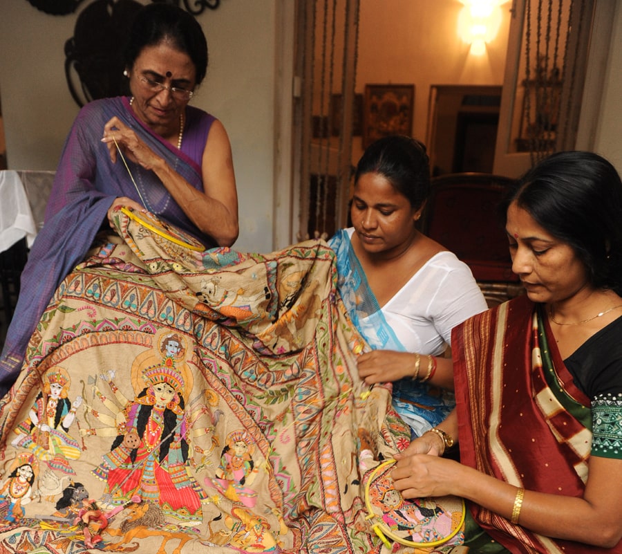 Over 30 years ago, Shamlu’s daughter, Malika (now Malika Varma) and she started Malika’s Kantha Collection and Self Help Enterprise. Malika introduced tailored garments from kantha textiles when she was in college and worked to spread this work with her mother for nearly 15 years. After a period away, she has now fully taken over the kantha activities of both the enterprises. Malika’s Kantha Collection has nearly 1,000 artisans working with the mother-daughter duo.