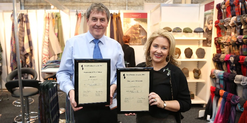Nenagh textile manufacturer John Hanly & Co. Ltd. has bagged top award at the annual creative trade show “Showcase” which took place recently in Ireland. ‘Overall Winner of the Best Product Award’ was handed over to Brian Hanly, Managing Director, John Hanly & Co. Ltd. and Karen Hennessy, Chief Executive of the Design & Crafts Council of Ireland. Their recent collaboration with top Irish designer Mariad Whisker was also recognized at the show.