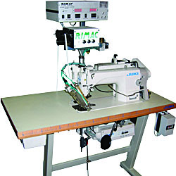 Rimac 2500L Bed Sheet Hemming Line comprises of longitudinal hemming machine which is equipped with 2 sewing heads that perform the hemming operation on both sides of the fabric. Loading of the fabric on the machine can be either in the roll form or layered form. The fabric width on the entrance feeding is regulated with the help of cutters-to-thread. High quality hem is achieved by automatic alignment of the 2 sewing heads, thanks to 2 photocells on each side of the unit. Depending upon your buyers, you have the option to choose either lockstitch hem or a chainstitch hem. The sewing speed varies from 4500 spm (stitches per minute) to 6000 spm and can be controlled as well. Productivity of the machine is approx. 13 metres per minute in case of lockstitch head, while 18 metres per minute in case of chainstitch head – considering stitch density of 3 stitches/cm. The hemming width is adjustable from 8 cm to 10 cm and power required is 4 KW, 380V, 3 phase. Model 3000 from Rimac is a semi automatic machine for the insertion of elastic in fitted sheets. This programmable machine is easy to use. It inserts elastic and hems in desired positions without stopping, thereby tripling the performance of the operator. Once the length of the elastic insertion is set in sewing stitches, and adjusted to the stretch, the operator has to only start hemming the sheet. The machine automatically inserts the elastic and cuts the same, leaving it completely inside. An automatic feeder allows maintaining a constant tension with the desired stretch which can be easily adjusted through a potentiometer. The K3 model of this machine does automatic hemming with elastic insertion.